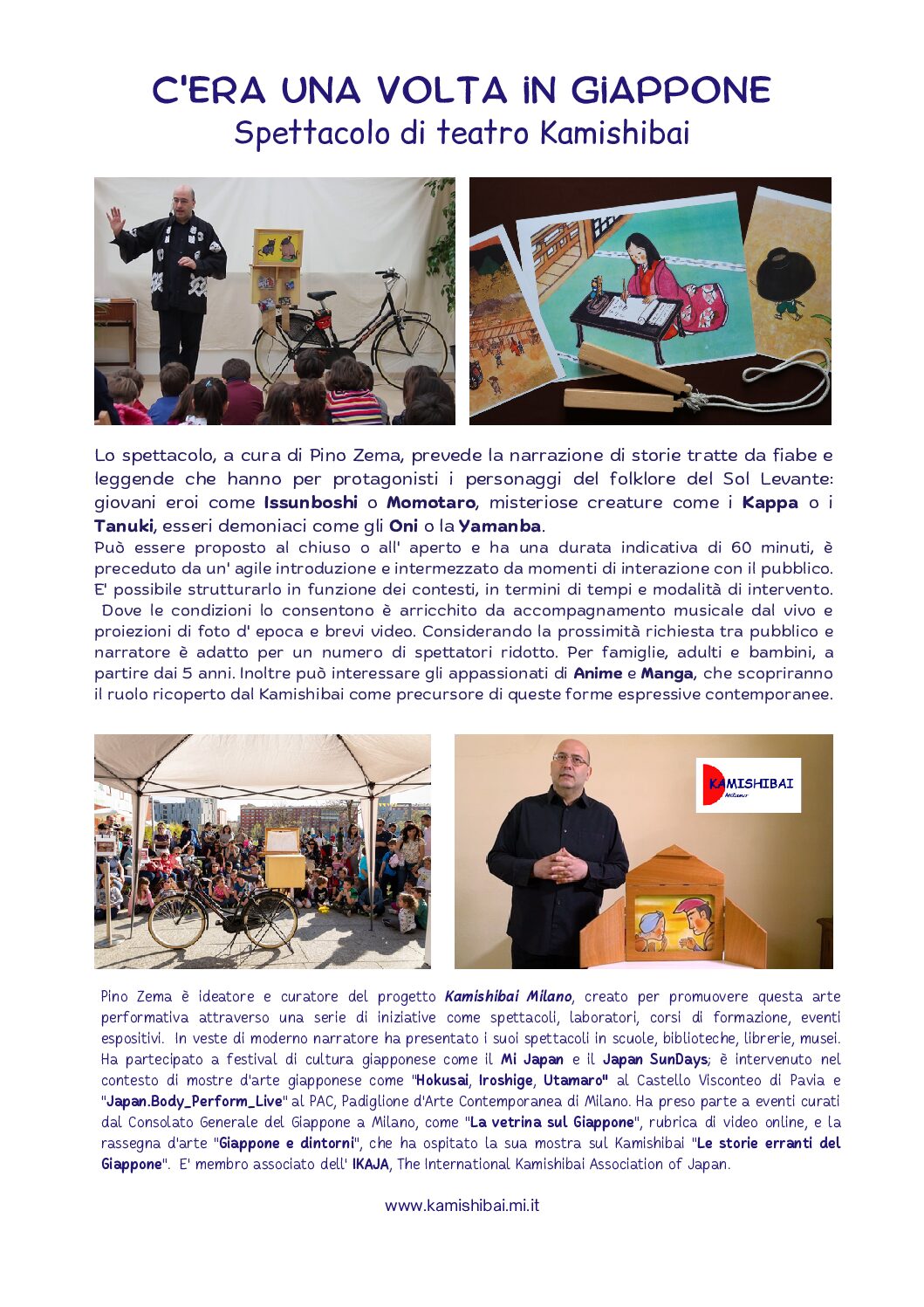 Pino Zema, studioso di cultura nipponica, propone il suo spettacolo dedicato ai Kamishibai, i cantastorie giapponesi.